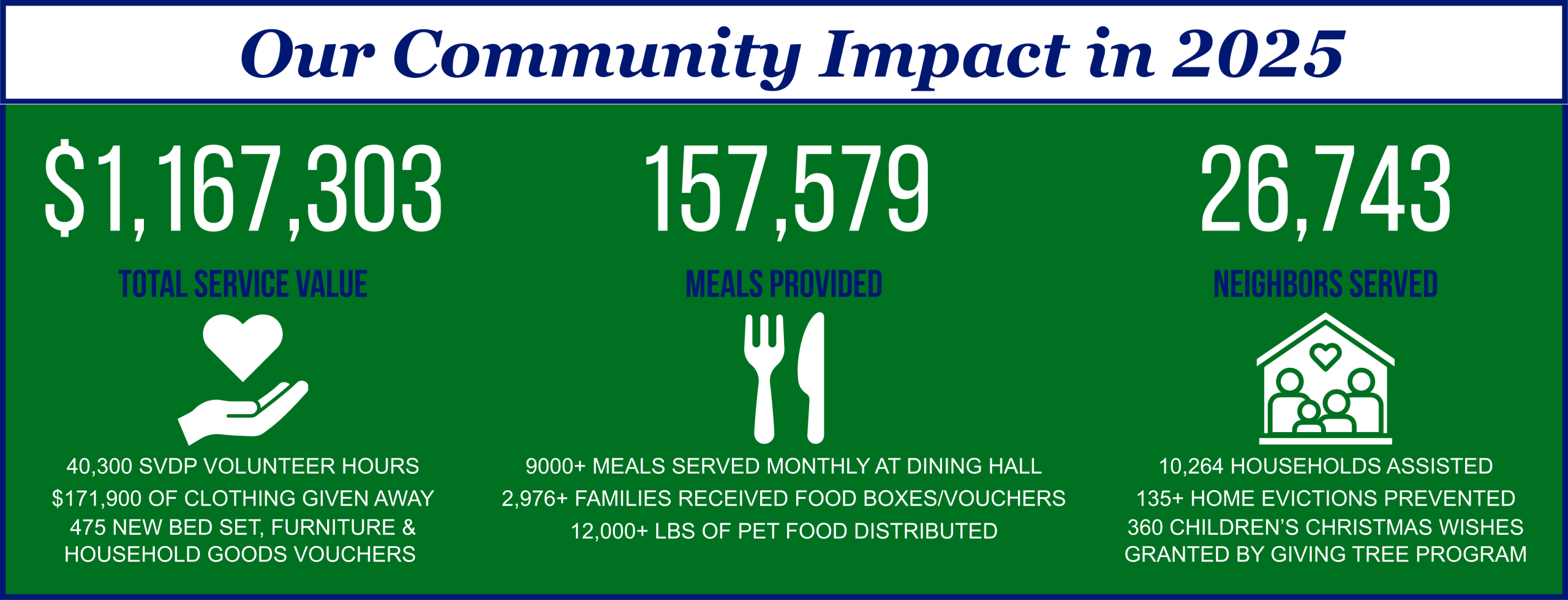 SVdP provides multiple safety-net services for thousands of area needy residents and respects the dignity of every person we serve.
