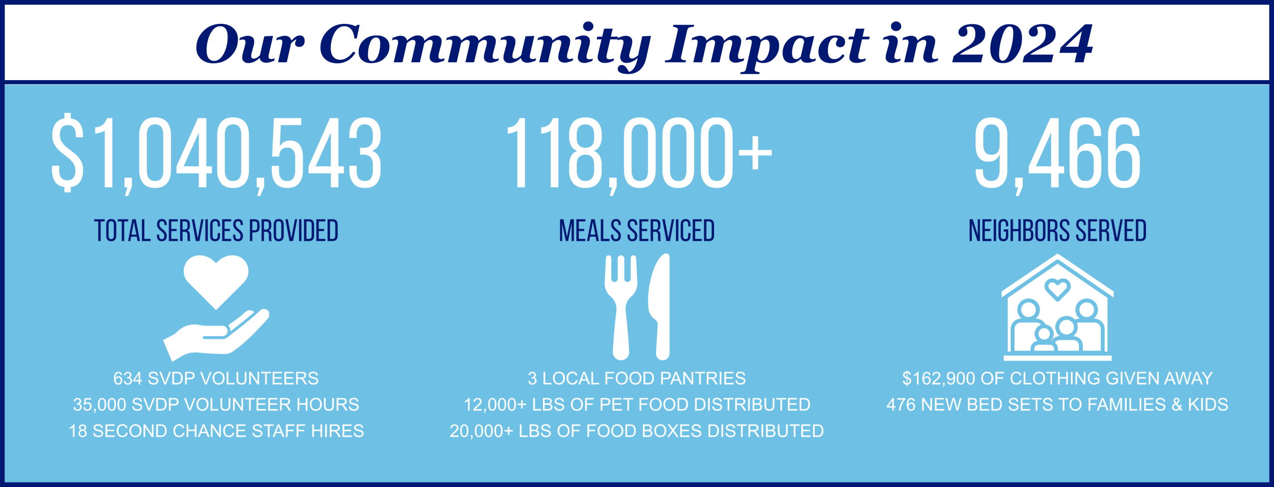 SVdP provides multiple safety-net services for thousands of area needy residents and respects the dignity of every person we serve.
